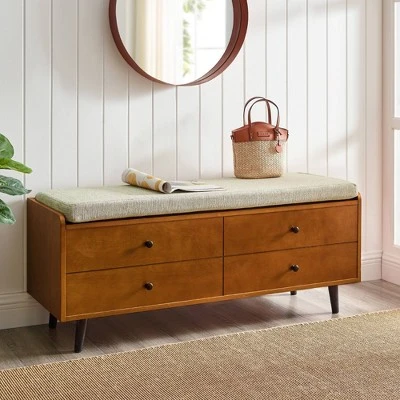 - Features: Hinged Lid, Storage, Padded Seat