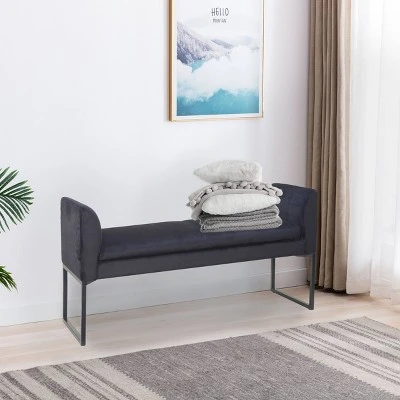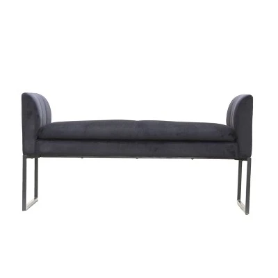 Add a touch of elegance and functionality to your home with the ACEssentials Hayden Accent Bench. Perfect for extra seating at the end of your bed or in your entryway, this bench provides a comfortable spot to sit in any room. The sleek black velvet upholstery ensures this bench blends in with your furniture, while the matte black legs add a pop of style to your decor. The bench also features a sewing pattern on its top to create channeling. The accent bench is easy to assemble so you can start enjoying this piece right away. Measuring 47.83″ x 16.14″ x 24.8″, this bench is large enough to accommodate your seating needs without taking up too much space.