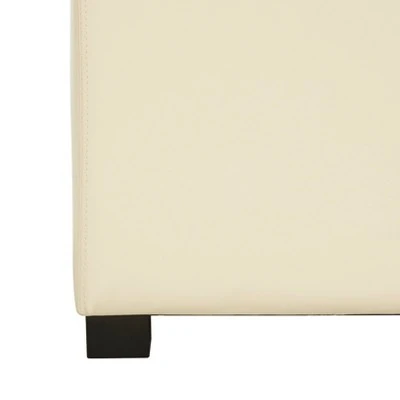 - Upholstered with an off white colored Bicast leather and CA foam fill material for comfort