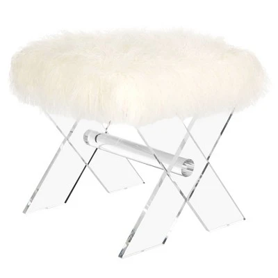 Inspired by the flair of Old Hollywood style, this contemporary sheepskin x-bench adds a luxurious touch to any living room. It is ideal as an extra seat or surface, its plush white Mongolian lamb fur and sleek clear Lucite legs make it an updated classic. The soft seating and cool acrylic details of the Keely Sheepskin Bench makes it a perfect addition for contemporary, modern, or transitional rooms. This item does not require assembly and is instantly ready for the room.