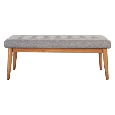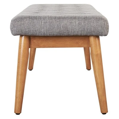 The Landon Bench is mid-century modern versatility at its finest. This bench could be used at the dining room table, the end of your bed, or in your entryway. The linen gray button-tufted upholstery is comfortable, while the warm acorn finished legs are sturdy and include an adjustable leveler. The Landon Bench is useful, without sacrificing style.