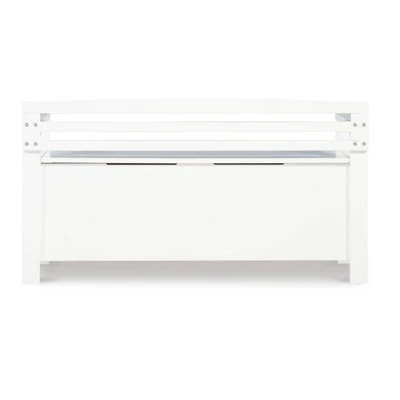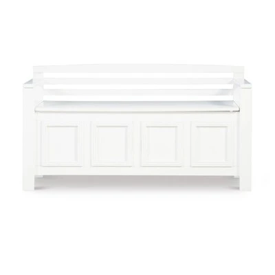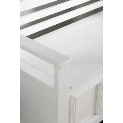 Create added seating and storage to your foyer or mudroom with this attractive and functional Laredo Storage Bench. The bench features a flip top lid, allowing the user to easily retrieve articles from the storage compartment. The ladderback design and decorative front are enhanced by the white finish. A stylish and functional addition to any home.