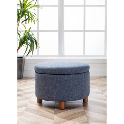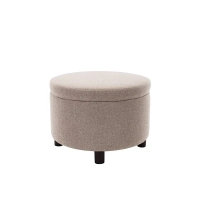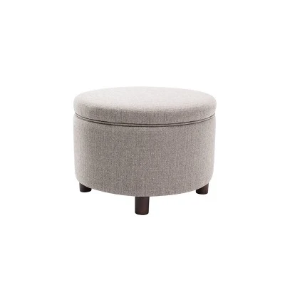 This classic 24″ round storage ottoman will have lasting function and be a timeless style addition to your home. Designed to be an easy storage solution in your bedroom, living room, or entryway – use for storing blankets, shoes, pillows, or remotes. Offered in classic fabrics that will be an easy compliment to any interior style. Easy to care for and maintain.