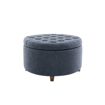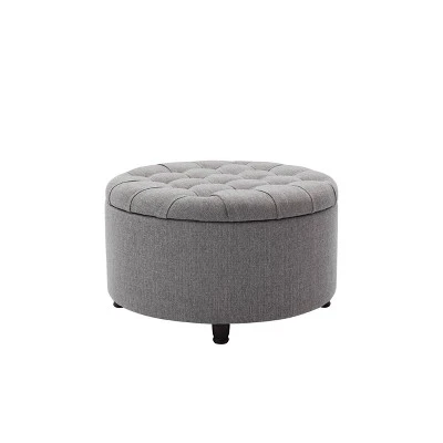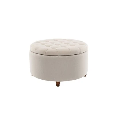 Designed to offer comfortable seating, practical storage, and timeless style to your home, this 28″ round pintucked storage ottoman will be a versatile investment piece for years to come. The classic round frame is offered in a range of fabrics and wood leg finishes that will work with your existing decorating style. Enjoy storing blankets, puzzles, games, or remotes and a comfortable seat for guests when you entertain. With added premium pintucking details, this round storage ottoman will serve it’s purpose in your family room, bedroom, or entry way.