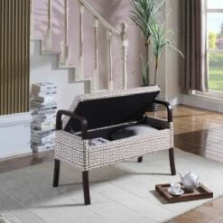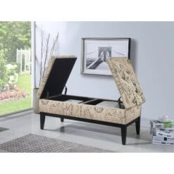 Enhance your home decor with this brown bonded leather storage bench. Keep clutter out of sight by storing away all of your belongings in the storage compartment. The solid manufactured wood construction frame ensures a long, durable life, while the protective coating on the brown bonded leather upholstery keeps it looking new for years.