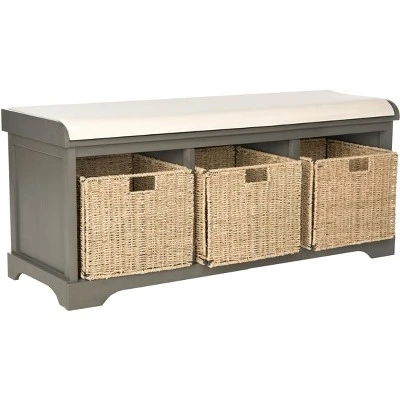 The Lonan Storage Bench is the perfect perch for removing boots in an entryway or garden shoes in the mud room. Crafted of pine, Lonan’s three removable woven baskets provide no fuss storage, and a cushion completes the look with comfort and farmhouse charm. Care Instructions: To prevent overall soiling, frequent vacuuming or light brushing is recommended. Cushions and pillows should be turned on a weekly basis. Down filled cushions should be brushed rather than vacuumed. Spot clean, using a mild water free solvent or dry cleaning product. Only a professional cleaner should undertake a complete overall cleaning. The use of steam or water based cleaners may cause excessive shrinking or staining.