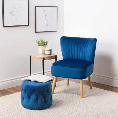 Put your feet up and get comfortable with this round velvet tufted pouf ottoman. Not only are these poufs great as a footrest, but they can also double as a side table stand-in. The button-tufted velvet upholstery adds a touch of luxury and is great for adding some style and versatility into your living room or bedroom.