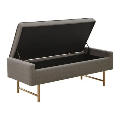 Complete your living room or bedroom with the Sunnycrest Accent Bench. Upholstered in a rich gray fabric, this accent bench features bronze metal legs that create an elegant contrasting look. Incorporate this accent bench into your home decor to give your space a simple, yet handsome allure. Assembly required and no tools needed.