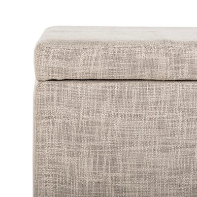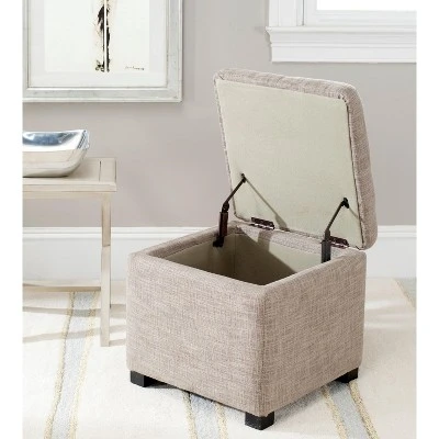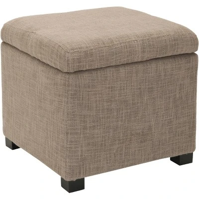 The Madison Square Ottoman is the star of the living room, family room, or den. Crafted with a soft stone viscose blend fabric and birch wood legs in a black finish, its hinged top conceals your miscellany with ease, while its cushioned top offers seating for that extra friend of a friend. Care Instructions: To prevent overall soiling, frequent vacuuming or light brushing is recommended. Cushions and pillows should be turned on a weekly basis. Down filled cushions should be brushed rather than vacuumed. Spot clean, using a mild water free solvent or dry cleaning product. Only a professional cleaner should undertake a complete overall cleaning. The use of steam or water based cleaners may cause excessive shrinking or staining.