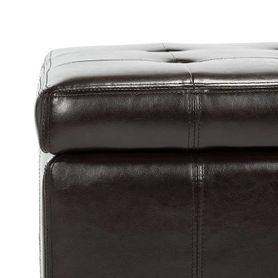 The Maiden Square Tufted Ottoman is an indulgence in luxe, functional contemporary style. Crafted with black Birch wood and Bicast leather, its posh tufts conceal ample storage space below. Ideal for any room in need of a chic, functional update. Simple contemporary designs allows it to be an easy to match piece and a hidden storage space. This sturdy bench is able to hold up to two hundred and seventy five pounds. The Maiden bench is the perfect addition for Glam, Modern or Transitional style décor.