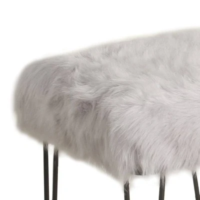 - Durable Metal framed stool features gray faux fur upholstered seat.