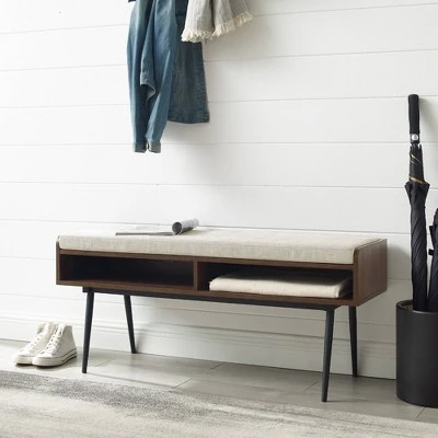 You can always count on the Mid-Century Modern 44″ Open Storage Entry Bench by Saracina Home to see you off and welcome you home. This entryway bench features two open storage compartments for dog leashes or cold-weather gear so you’re always ready for your next excursion. The two-inch cushion provides a comfortable place for you to stop and put your shoes on. Keeping the cushion clean is as easy as removing the cover and throwing it in the washer. Whenever you’re headed out the door or just getting back, you’ve found a storage bench that can keep up with your active lifestyle.