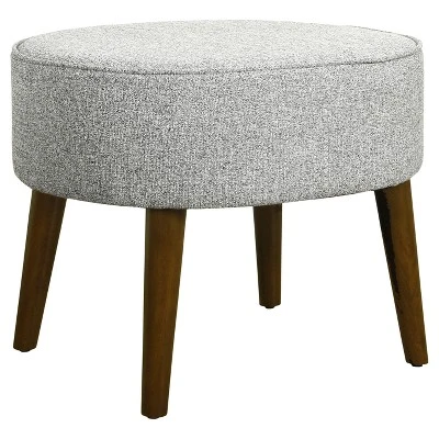 Brimming with sophisticated charm, the Mid-Century Oval Ottoman with Wood Legs from HomePop represents the best of mid-century modern design — perfect for incorporating into your stylish abode. Comfortably cushioned and supported by graceful tapered legs with a wooden construction, this gray oval ottoman will fit right at home in your living room, vanity area or office. Craft a luxurious modern dwelling by placing this ottoman in front of a tufted sofa, and complete the look with a patterned rug, wooden credenza and end table.