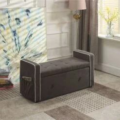 Insert this spacious floral upholstered storage bench in your room, and enjoy its versatile functionality. This piece serves as seating for your home when you’re not using it as a footrest or a serving platform, and it lets you tuck away blankets, magazines and whatever else you want to get up and off the floor to keep your room neat and tidy.