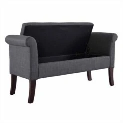 - Upholstered wooden bench comes with hidden storage for stowing away essentials