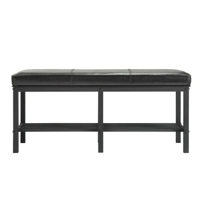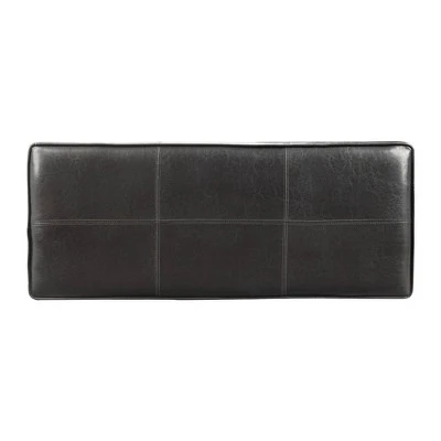 Add clean and modern lines with the Norton Modern Faux Leather Upholstered Bench by Inspire Q to your entryway, bedroom, or living space! This bench adds convenient storage under the bench or extra space where you can slip your shoes. The faux leather padded seat cushion offers a comfortable spot to rest while taking your shoes off when entering the home.