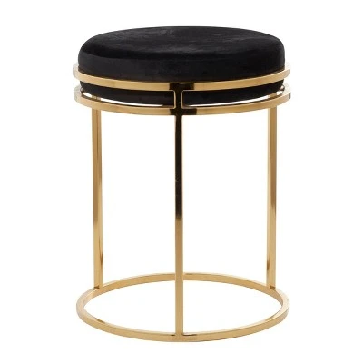 - Features round-shaped black upholstered seat with semi shine gold metal finish