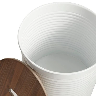 - This nifty set of white counter stools feature a solid white metal finish and a natural brown wooden finish