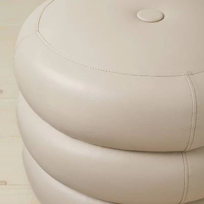 Give your home an updated look by adding this Molise Faux Leather Pouf from Opalhouse™ designed with Jungalow™. Designed in a round shape with three tire-like bases stacked together, this pouf features tufted button accent on top for an elegant look. It’s upholstered with faux leather to bring classic flair to your space. Use this round pouf as an extra seating option to accommodate guests, to keep snacks or prop up feet after a long day. And with its solid-color design, this pouf easily suits your interior decor style.