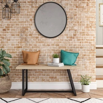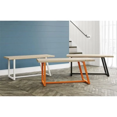 - Made of laminated particleboard and hollow core with a sturdy metal base, the base adds a modern feel and pairs with the woodgrain finish of the bench seat