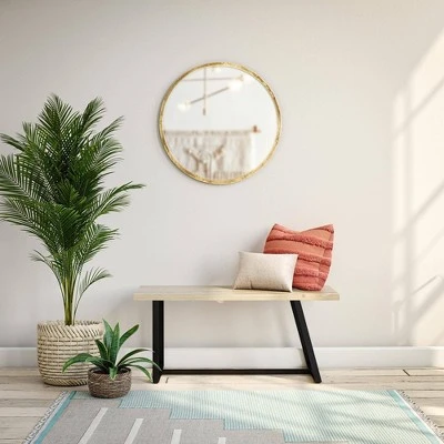 Show off your style right as you walk through the door with the Novogratz Palomino Asymmetrical Bench. The bench can support up to 200 lbs. and gives you a comfortable spot to take off your shoes after a long day. This bench will offer a fun retro look to your front entryway.