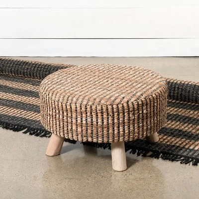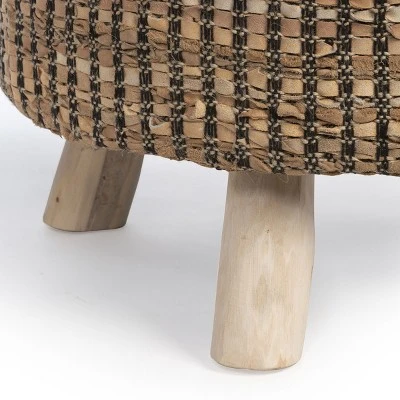 Made of recycled leather and interwoven with hemp into a stripped pattern, this cute footstool is perfect by your favorite chair to kick up your feet or have for extra seating. The natural wood feet complete the casual look. Each stool is unique to its own with the mix of various leathers so no two are exactly alike. Also comes in a bench version.
