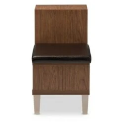 Adana Faux Leather Upholstered and Wood Storage Ottoman Dark Brown/Oak Brown – Baxton Studio