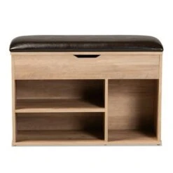 Rance Faux Leather Upholstered and Metal Shoe Storage Bench Dark Brown/Black – Baxton Studio