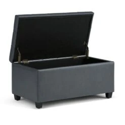 34″ Marlowe Storage Ottoman Bench – WyndenHall Midnight Black