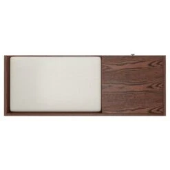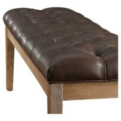 - Neutral padded upholstery and a rich brown finish pairs seamlessly with a variety of decors