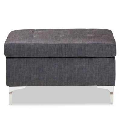 Balance the atmosphere of your living room with the complementary design of the Riley ottoman. Made in China, this ottoman is comprised of a sturdy wood frame padded with plush foam and upholstered in smooth fabric. Biscuit tufting ensures sumptuous comfort and support while lending a contemporary touch to any interior space. Requiring assembly, the Riley is elevated to an ergonomic height by four silver tone metal legs. Providing superb comfort as an extra seat or footstool, the Riley ottoman is an easy addition to the modern home. Dimensions: 20.10″ High x 33.75″ Wide x 13.50″ Deep; Seating Area Dimensions: 20.10″ High x 33.75″ Wide x 13.50″ Deep