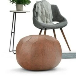 Make a tasteful addition to your home décor with the Rogen Round Pouf. The pouf is upholstered in a patterned genuine buffalo leather with stitching detail. Can be used as an ottoman or extra seating. This versatile pouf is sure to enhance the style of your space.