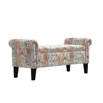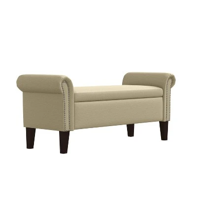 - Features: Storage, Nailhead Trim, Hinged Lid, Padded Seat