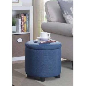 The Designs4Comfort Round Accent Storage Ottoman will bring life to any space. Featuring a removable lid for concealed storage that is also reversible! Flip over the lid to reveal the multifunctional tray. Use it to hold your laptop while you work or as a temporary small table top for any other odds and ends you may have at the time. Available in multiple color finishes this ottoman will easily complement any new or existing decor.