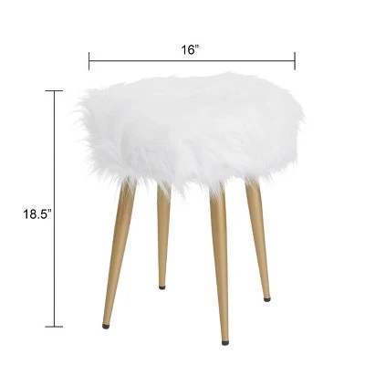 If you’re looking for a textured stool with metallic legs that’s also glamorous, then look no further. The Round Faux Fur Stool Gold – Silverwood makes a great vanity stool in your walk-in closet. This round stool is ultra-glamorous and provides a good seating solution. The stool is lightweight and portable so you can shift it around anywhere in the house. Measures: 16 W x 16 L x 18 H in ».