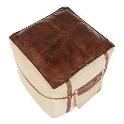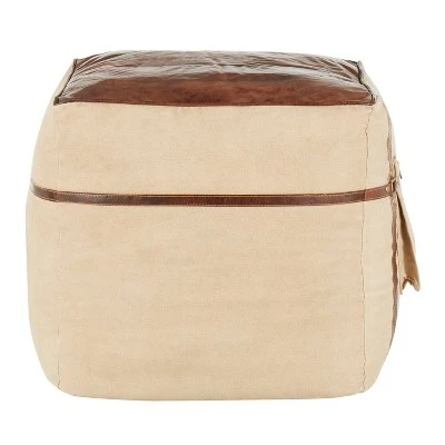 Explore something new with the Samson Pouf by LumiSource! Perfect for propping up your feet or extra seating, this unique square pouf ottoman features leather, canvas upholstery and a unique front pocket, perfect for storing remotes or chargers. Available in a variety of colors, choose the one that fits your space the best.