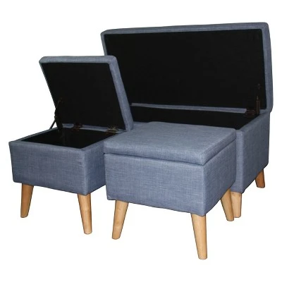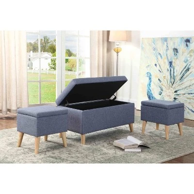 Insert this Aquamarine Solid Blue spacious storage bench in your room, and enjoy its versatile functionality. This piece serves as seating for your home when you’re not using it as a footrest or a serving platform, and it lets you tuck away blankets, magazines and whatever else you want to get up and off the floor to keep your room neat and tidy. Wooden legs finished in a reclaim teak wood put an elegant spin on this handy storage bench. You be able to separate the pieces to achieve the perfect accent for your bedroom, study, living spaces.