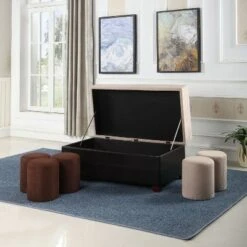 Shades Storage Ottoman with 5 Ottomans Brown – Ore International
