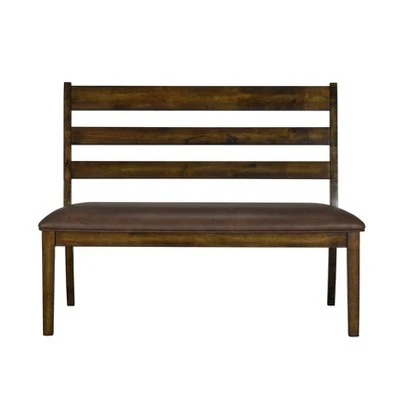 This ladder back bench is made from solid hardwoods, has a cushioned, upholstered seat and comes in a rich warm brown finish.