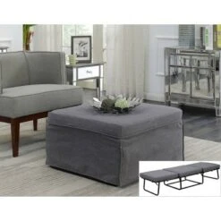 Riley Fabric Upholstered Ottoman Gray/Silver – Baxton Studio