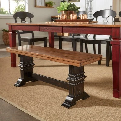 Add classic style to your dining room or kitchen with the South Hill Baluster Base Bench. This farmhouse inspired bench features solid wood construction, an oak finish seat, and a variety of antique finishes for the trestle base. This item coordinates perfectly with the other items in the South Hill collection, mix and match to create your own style!