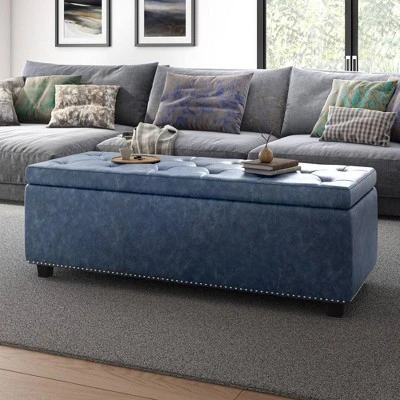 Clutter and junk everywhere. What you need is a well made storage solution that is both functional and beautiful. The Springfield Large Rectangular Storage Ottoman Bench is durable, strong and sturdy. It features a beautiful tufted exterior, nail head trim, lift up lid and large storage interior. Whether you use this ottoman in your entryway, living room, family room, basement or bedroom, it will allow you to hide away all that mess.