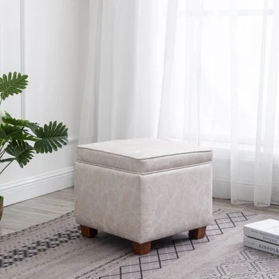 - Product Name: Square Storage Ottoman with Piping and Lift Off Lid – Distressed Tan Faux Leather – WOVENBYRD