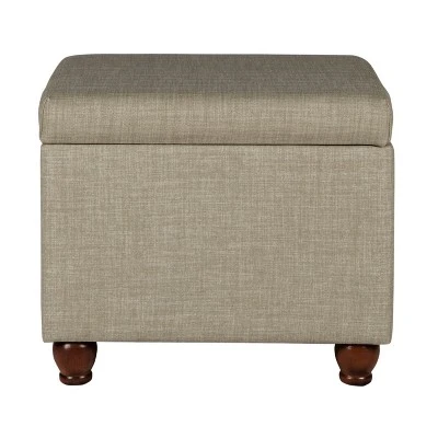 Offering solutions for seating, storage and serving, this cocktail storage ottoman features a lift-off lid with all over button tufting for classic style. Upholstered in a fashionable tan, this round ottoman will attract attention while hiding accessories, game controllers or magazines from view. Use it as a coffee table ottoman to serve beverages and snacks for guests or to provide extra seating. Featuring wood legs in a light cherry finish, this tufted ottoman with a lift-off lid is easy to assemble and maintain.