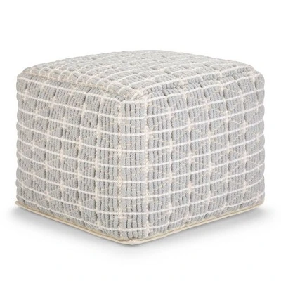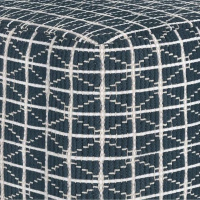 Tatum Square Pouf – WyndenHall Dark Blue/white