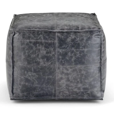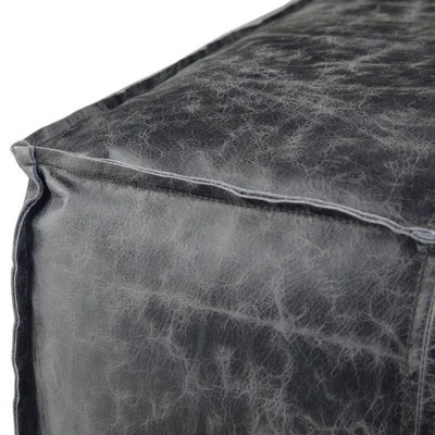 Make a tasteful addition to your home décor with the Templeton Square Pouf. The pouf is upholstered in a distressed look black genuine buffalo leather with top stitching detail. Can be used as an ottoman or extra seating. This versatile pouf is sure to enhance the style of your space.