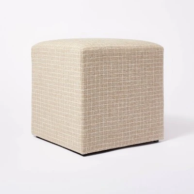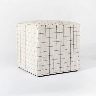 From an eye-catching accent to spare seating to a spot to rest your feet, you’ll love the options the Windowpane Plaid Lynwood Upholstered Cube from Threshold™ designed with Studio McGee adds to your space. With its generous 19.25-inch height and 19-inch width, this decorative cube is large enough to bring some dimension to an empty corner or against a bare wall, whether displayed on its own or used to showcase other accent pieces. It’s also upholstered with just a touch of cushion and a hardwood frame that supports up to 275 pounds, letting it serve equally well as a functional piece to prop up your feet while relaxing on the couch or to add some extra seating to your space when needed. However you choose to use it, you’ll love the striking windowpane plaid pattern that’s sure to draw attention to the piece, as well as the black-on-white color scheme that makes it easy to incorporate with both neutral and bright color palettes.