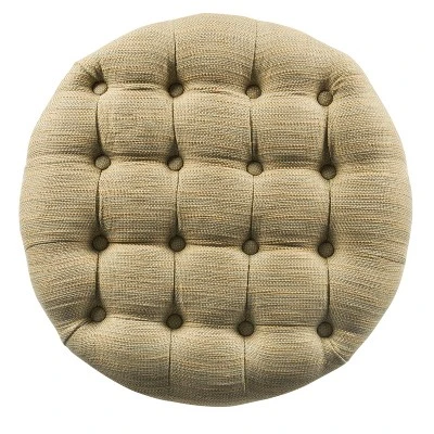 The round storage ottoman offers timeless style in a textured tan and cream tweed fabric. With wood legs in a light cherry finish and button tufting on top, the plush tufted ottoman creates impact in any space. Use it in the living room or family room to contain controllers, remotes or toys or place it in a bedroom to store pillows or throws. This elegant multi-tasking storage ottoman can also provide extra seating or serve as an ottoman coffee table. The lift-off lid enables quick access to storage within. Easy to assemble and maintain.