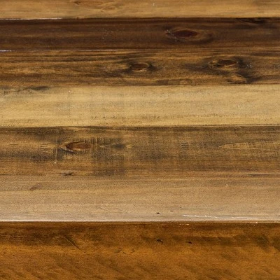 The Picket House Furnishings Tyler Standard Height Dining Bench is going to look oh so chic in your home! This dining room staple features a fixed seat, paired with powder coated, black metal legs. This top is made of solid, Brazilian pine wood ensuring it’s sturdiness over the years. This dining bench is a unique piece of furniture and no two pieces are the exact same. There are color and grain variations within each piece of wood. The cracks and dents featured are not blemishes but rather beauty marks which enhance the appearance.